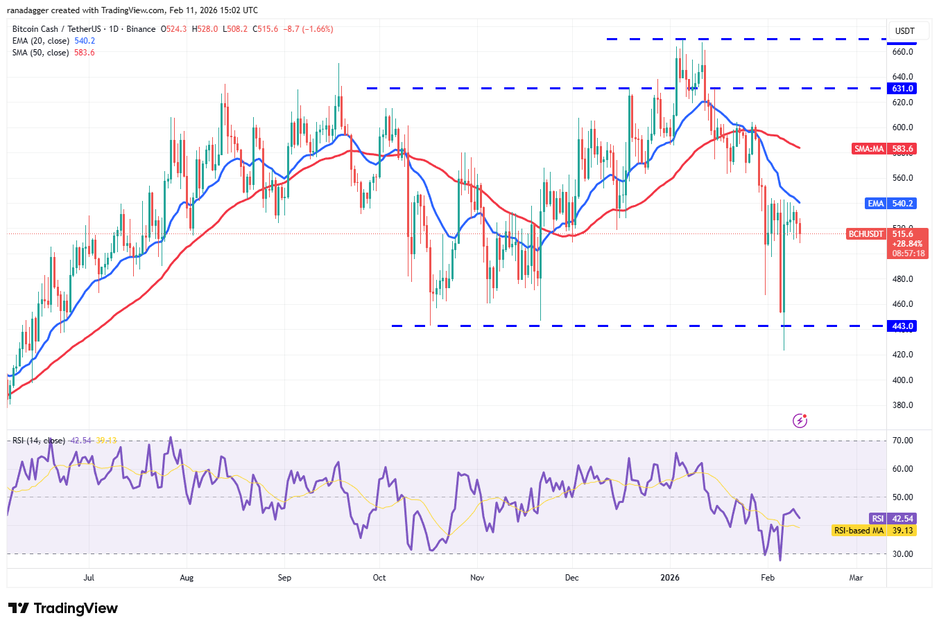 比特币现金(BCH)持续在20日EMA(540美元)面临强劲阻力,但轻微利好在于多头尚未向空头让出过多阵地。