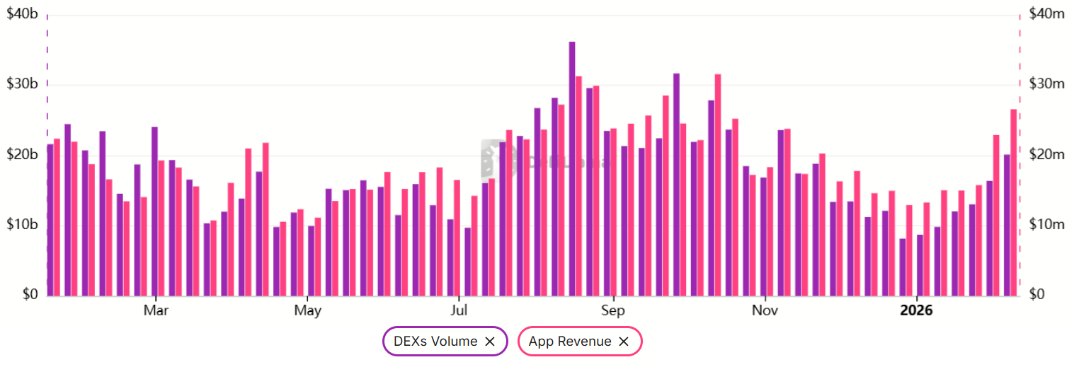 尽管情况在恶化,但市场对以太坊去中心化应用程序的需求在整个2026年一直在逐步改善。