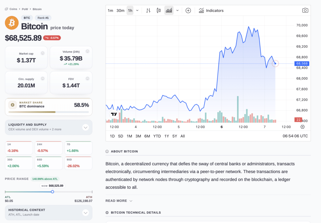 当前比特币价格稳定在68,482.43美元附近,24小时交易量突破357亿美元,市值逾1.37万亿美元,延续对市场主导地位的巩固。然而,这一看似强劲的表现背后,正面临来自全球能源市场、地缘政治紧张及金融条件收紧的系统性挑战。