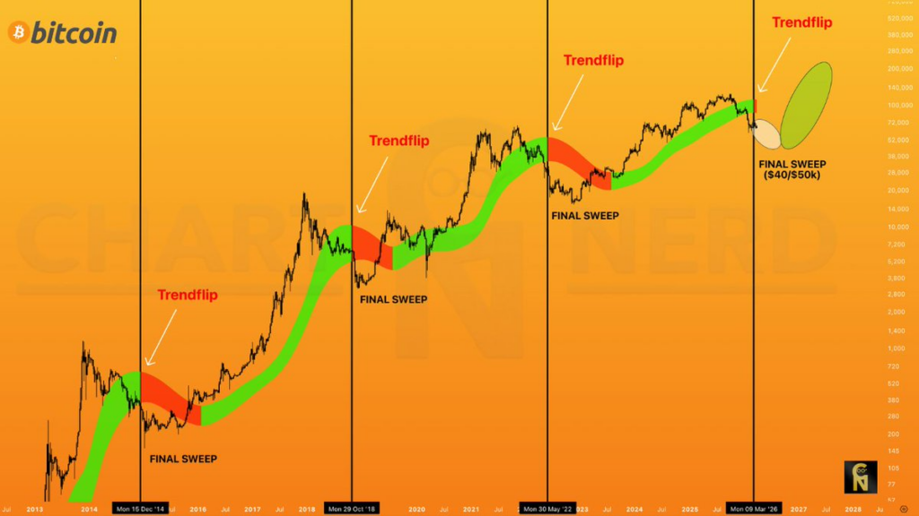 周线高斯通道具备过滤短期噪音的能力,精准反映跨越数月乃至数年的宏观趋势动能。当通道从绿色转为红色时,历史数据显示其往往出现在熊市核心阶段而非初期,意味着最惨烈的抛压即将结束。当前模式重现,市场参与者正密切观察后续演变路径。