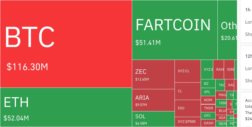 从币种维度看,比特币相关头寸成为最大清算源,24小时内被强制平仓金额约为1.163亿美元。以太坊紧随其后,清算额达5204万美元。此外,部分高波动性山寨币及ZEC亦出现显著清算规模。尽管狗狗币价格微涨0.52%,但其清算总额仍高达6730万美元,显示短期交易活跃度与风险并存。