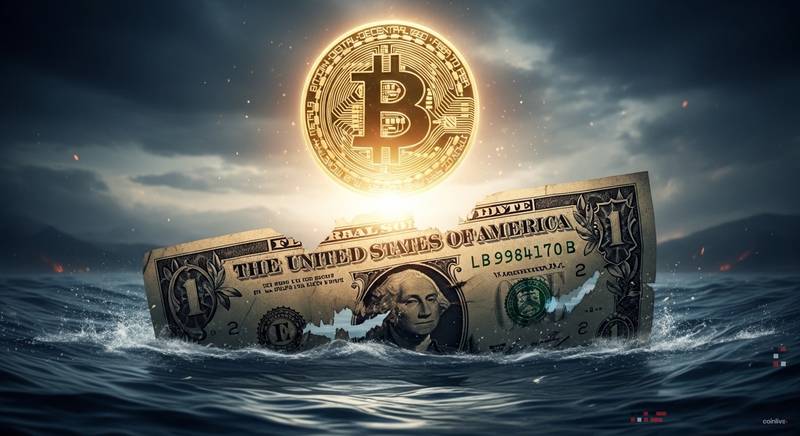 尽管2026年4月的文章聚焦于地缘政治升级引发的系统性风险,但其中关于美元相对比特币的贬值比例,并非出自该文。真正支撑这一比较的是达利欧前一年在《时代》周刊发布的报告,其中指出自2025年夏季以来,美元对主要货币下跌5%,对黄金贬值27%,而对比特币则暴跌45%。