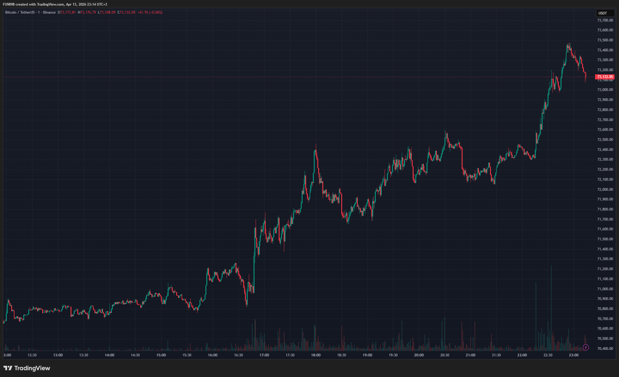 比特币价格在今日呈现持续上行趋势,已成功站稳73,400美元关口。此前,因中东局势升级,特别是美国副总统J.D. Vance未达成伊朗和平协议即离境巴基斯坦,以及特朗普政府宣布封锁霍尔木兹海峡,引发市场避险情绪升温,导致比特币一度下挫近4%。