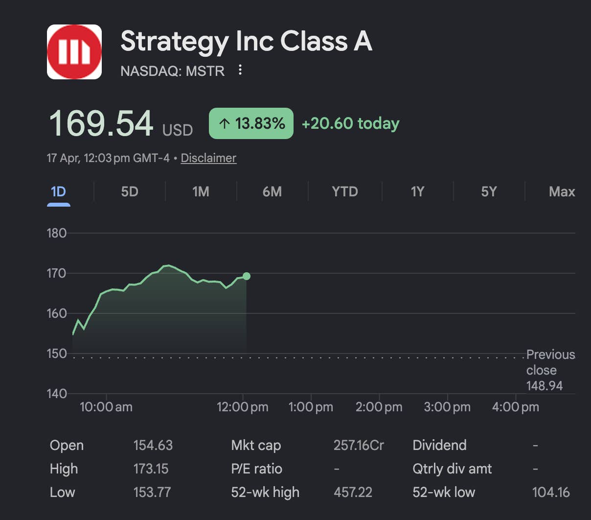 4月17日交易日中,由Michael Saylor主导的纳斯达克上市公司股价实现显著攀升,此次波动与比特币价格突破78,000美元的关键节点高度同步。