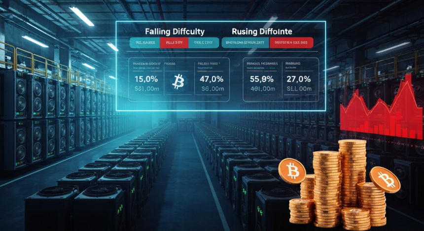 最新数据显示,当前挖矿难度已降至约135.5T,较前一日下降1.1%。此次下调有助于降低部分矿机的运行门槛,但预计在2026年5月1日的下一次调整中,难度将回升至137.43T,再度抬高运算门槛。