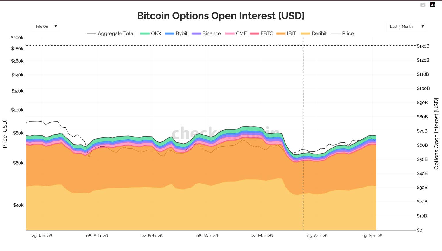 4月24日周五,价值约79亿美元的比特币期权将在衍生品交易平台Deribit迎来到期。这一时间点对已处于高度敏感状态的加密市场而言具有决定性意义。期权作为金融工具,赋予持有者在未来特定时点以约定价格买入或卖出资产的权利,但非义务,其运作机制类似于提前支付演唱会门票定金,期待未来门票溢价。
