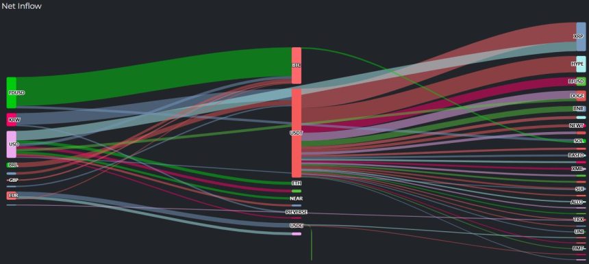 当日资金流入集中于多个非主流项目:比特币录得约771万美元净流入,XRP达611万美元,HYPE与狗狗币分别吸引346万美元和225万美元,BFUSD及BNB也分别获得180万与117万美元资金注入,反映出投资组合多元化趋势。