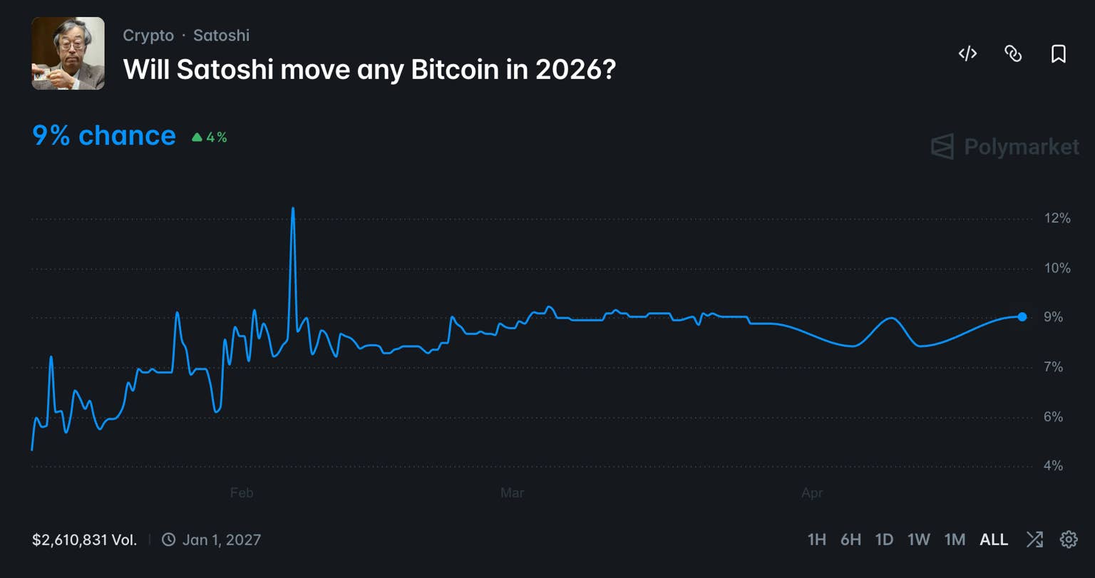 加密预测市场Polymarket最新数据显示,关于比特币创始者中本聪在2026年启动加密资产转移的押注概率显著攀升。这一趋势反映出投资者对匿名开发者未来行为的高度关注,尽管其真实身份仍无定论。