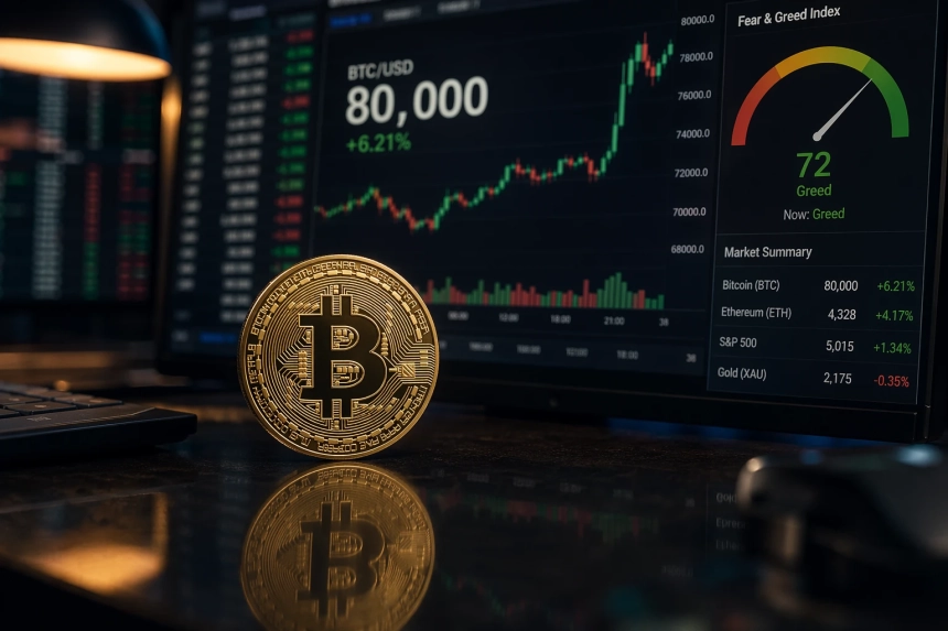 比特币价格在短时间内快速攀升,逼近80000美元关键心理位,推动整个加密市场情绪在三月内实现最强反弹。然而,当前情绪指标仍处于“恐惧”区间,上涨动能是否可持续仍需观察。