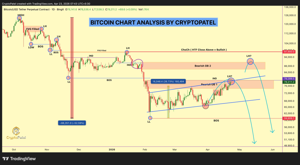 这意味着即便目前价格稳固于78,000美元上下,若关键阻力持续受阻,仍存在一次剧烈回调的风险,或将成为确认新趋势前的最后一道考验。
