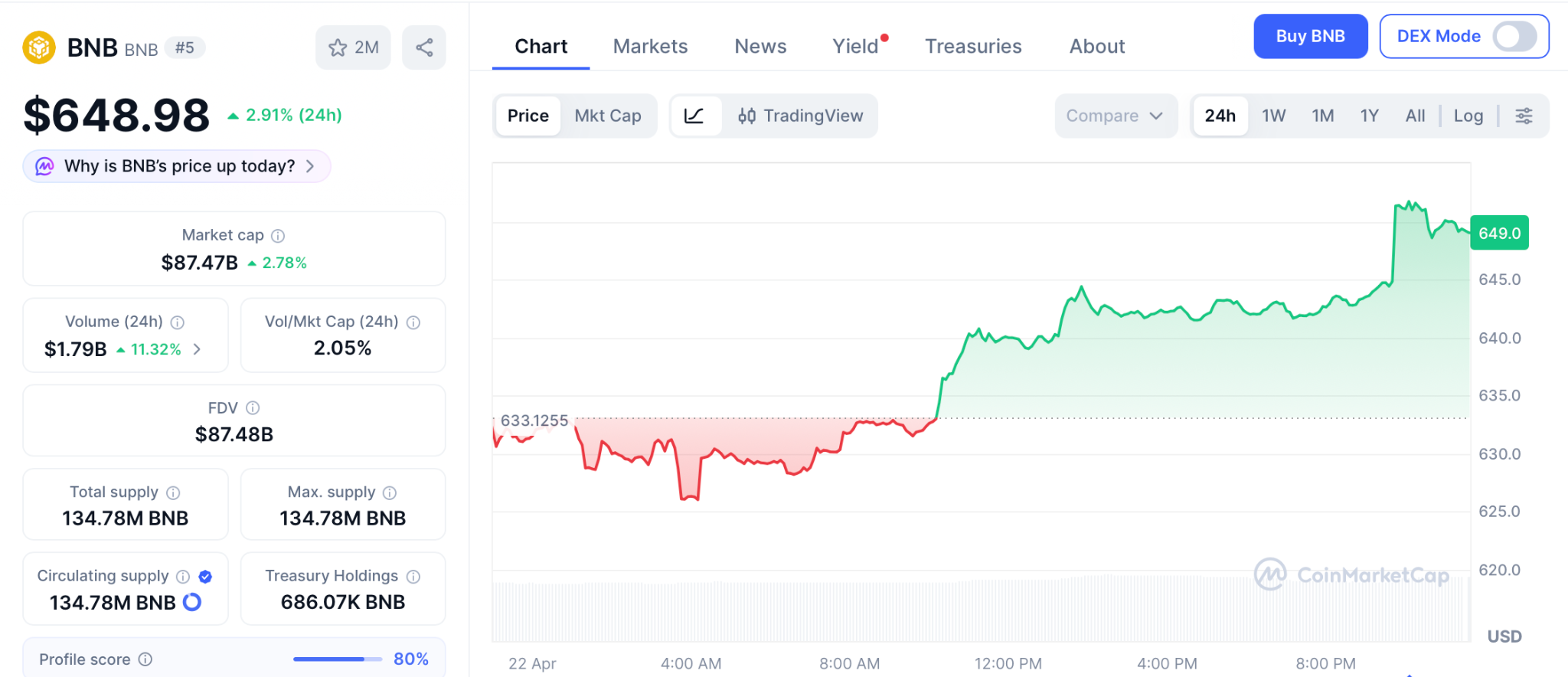 币安币(BNB)目前稳定在648美元附近,市值约870亿美元。尽管币安平台持续稳定的交易流量与季度销毁机制持续减少流通供应,但该币种在644美元区域多次遭遇抛压,距离2024年高点793美元仍有约20%差距。