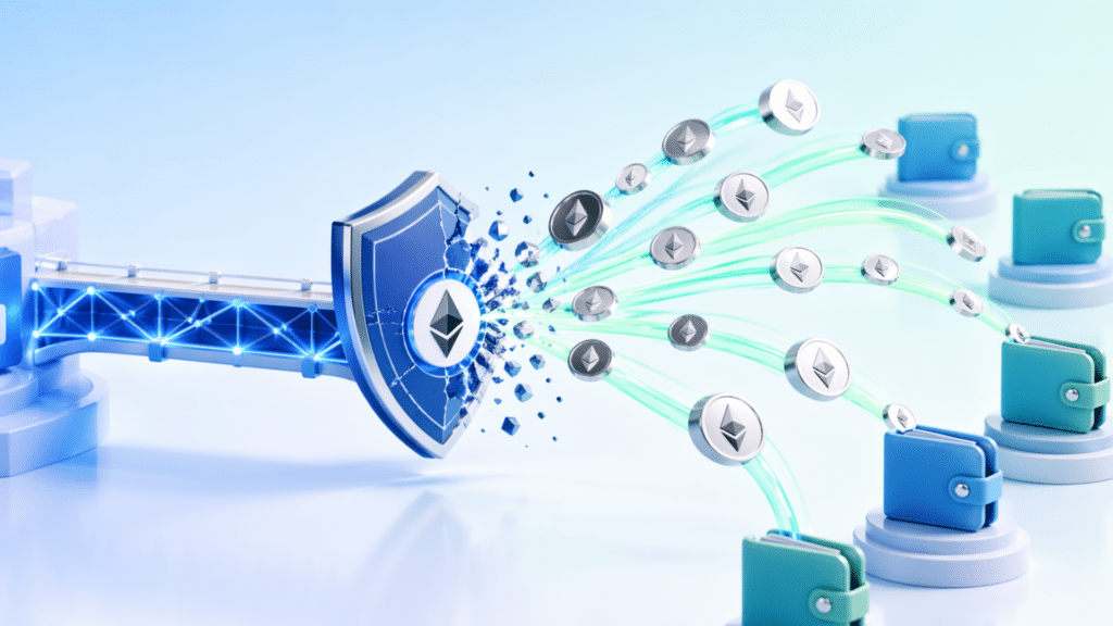 漏洞爆发后,攻击者启动系统性资金拆分操作。包括将25,000枚与50,700枚ETH分别注入独立钱包,并辅以小额高频交易。此模式有效分散资金路径,提升隐蔽性,同时为后续跨链资产转换创造条件。