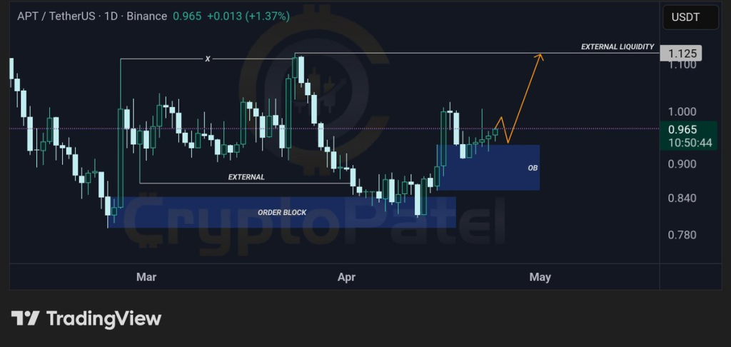在经历数周盘整后,Aptos价格重新展现上行潜力,最新技术形态开始吸引市场注意力。该资产成功守住底部支撑位,近期重回0.96美元区间,当前走势暗示若关键价位维持稳定,上升格局有望持续。