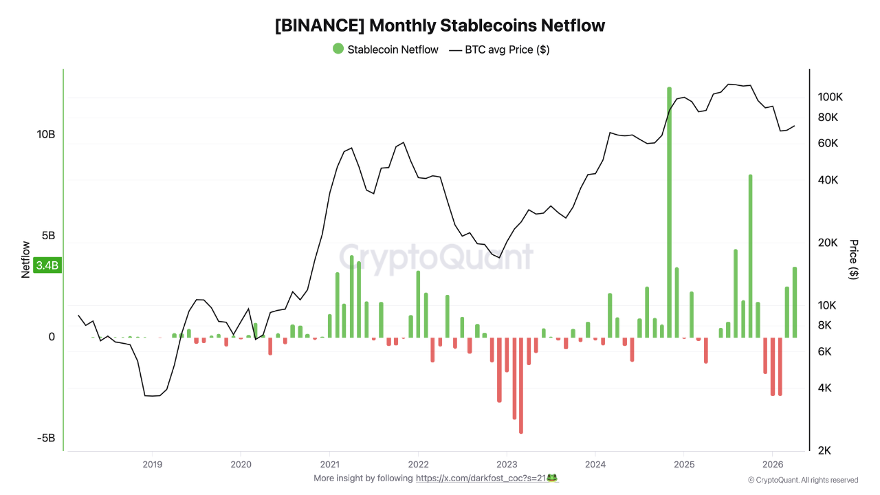 三月与四月期间,币安实现接近60亿美元的稳定币净流入,成功扭转此前持续数月的资金外流态势。这一转变标志着投资者行为出现关键性调整。
