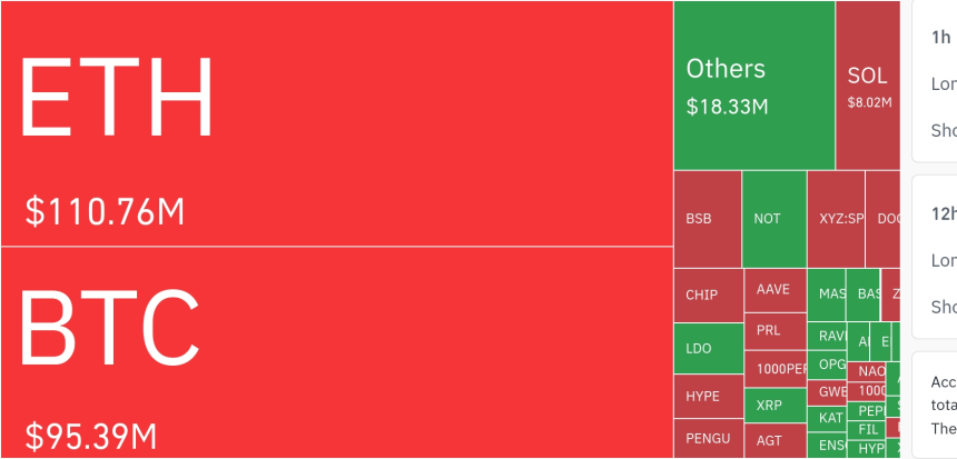 除主流币外,多数山寨币普遍走弱。BNB下跌4.3%,清算金额3.7万美元;Solana同步下滑4.3%,清算3.85万美元;BCH跌幅最大,达5.3%,清算额3.13万美元。其余如AVAX(2.84万美元)、SUI(2.66万美元)、ADA(2.13万美元)、LINK(1.97万美元)和APT(1.83万美元)亦录得不同程度清算。其中BCH领跌,而SUI与AVAX接近5%的跌幅表明市场波动性正在快速升温。