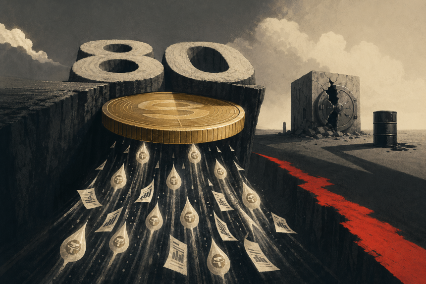 市场观察指出,80,000美元区间成为近期价格反弹的主要障碍,其背后是集中性的获利回吐压力。分析师表示:“两次逼近该价位均因抛售动能积聚而未能站稳。”