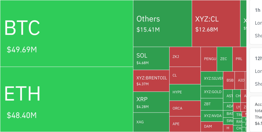 从资产类别分析,比特币相关头寸在24小时内被清算约4969万美元,位居首位。以太坊清算额约为4840万美元,排名第二。Solana在相同周期内清算金额达468万美元,其他主流山寨币中,XRP清算额约为428万美元,显示高波动性资产正承受更大下行压力。
