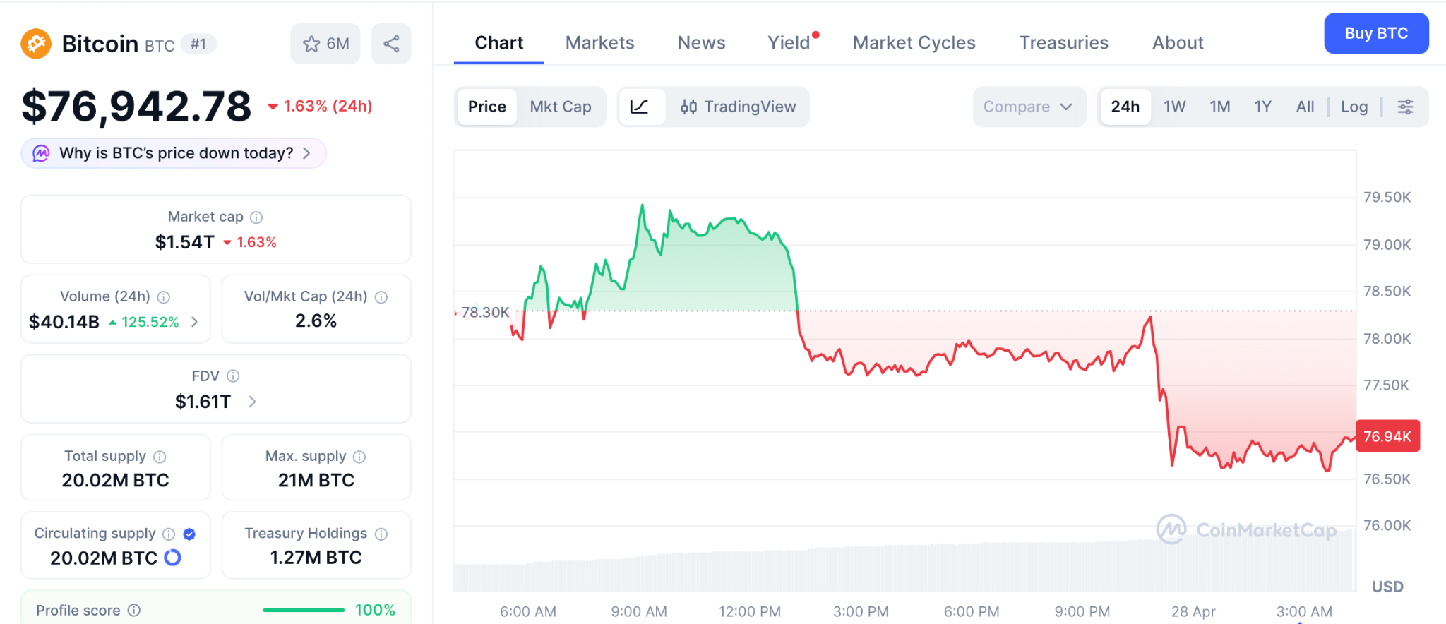 此次增持使策略型实体持有的比特币占已开采总量比例接近4%。这一数字不仅标志着资本层面的重大转变,也反映出大型机构对数字资产长期配置的坚定立场。当前比特币价格为76,942美元,虽在亚洲时段尝试冲击79,500美元未果,但仍维持在3月中旬以来的强势区间。