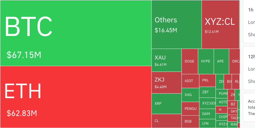 在24小时清算热力图中,比特币与以太坊分别贡献6715万与6283万美元的清算额,位列前两位,其他资产类别合计1645万美元紧随其后。个别项目如XYZ:CL出现1241万美元的显著清算,XAU与ZKJ分别录得461万与440万美元的集中抛压。综合来看,无论是交易所层面还是币种层级,近期数据均指向空头清算占优,被普遍解读为市场短期上涨动能引发空头强制平仓,形成正向反馈循环。