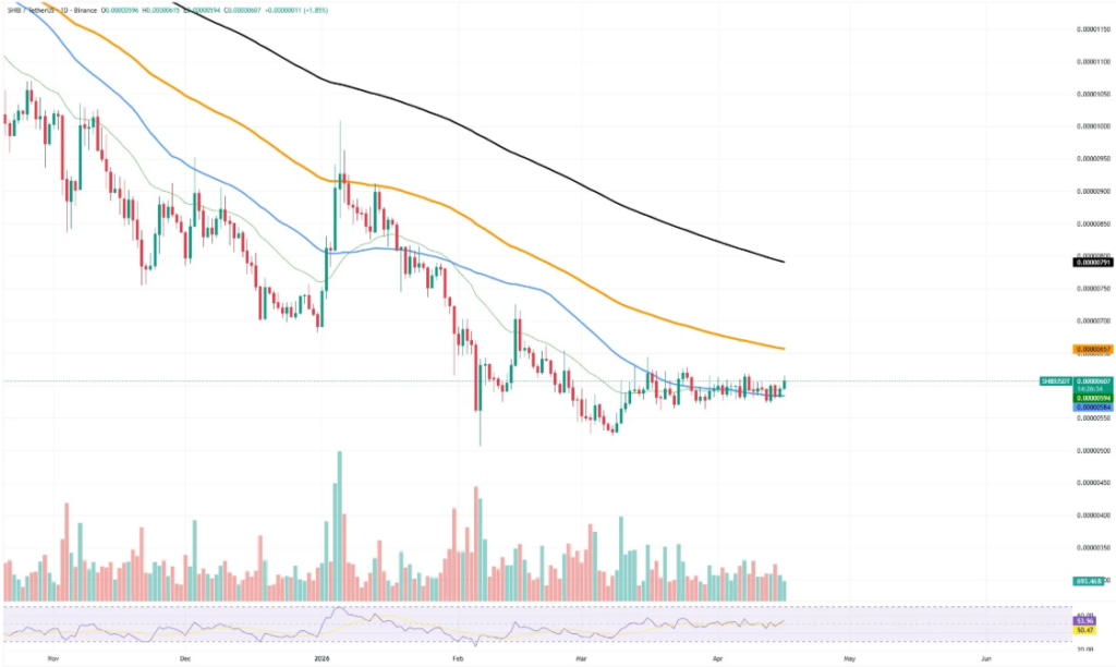 相对强弱指数已突破中位线,近期蜡烛图收盘价展现更强买方支撑力,表明市场情绪略有修复。然而,长期均线构成的关键阻力区域依然制约上行空间。若当前态势延续,下一目标区间预计为0.0000065至0.0000067美元。守住0.0000058至0.0000060美元支撑区,将成为决定能否突破阻力的关键。