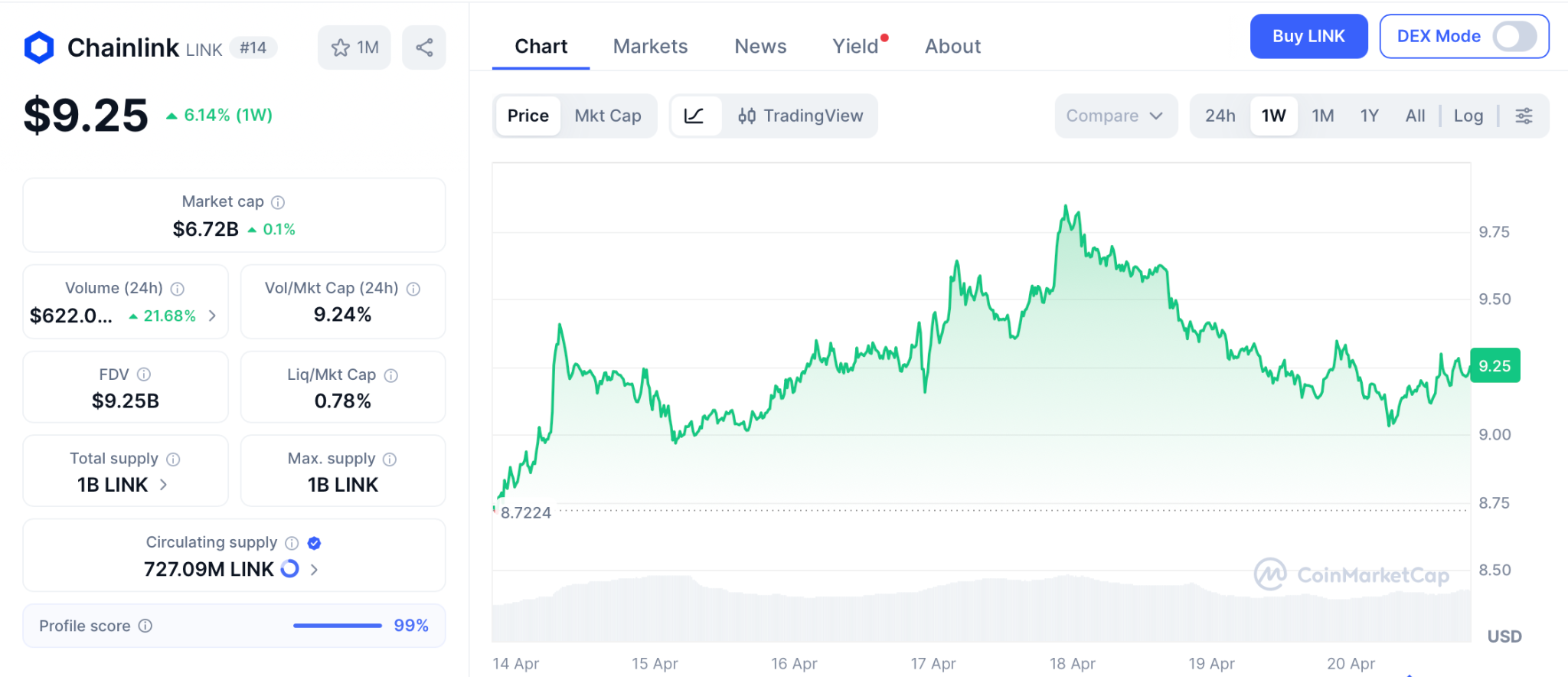Chainlink价格预测迎来新支撑点。瑞士证券交易所运营商SIX于4月15日启用Chainlink DataLink服务,为逾2万亿欧元的股票资产提供链上数据传输。据CoinMarketCap数据,当前LINK报价9.25美元,市值达67亿美元。摩根大通与瑞银集团亦在基于Chainlink CCIP基础设施开展实时区块链结算试点。