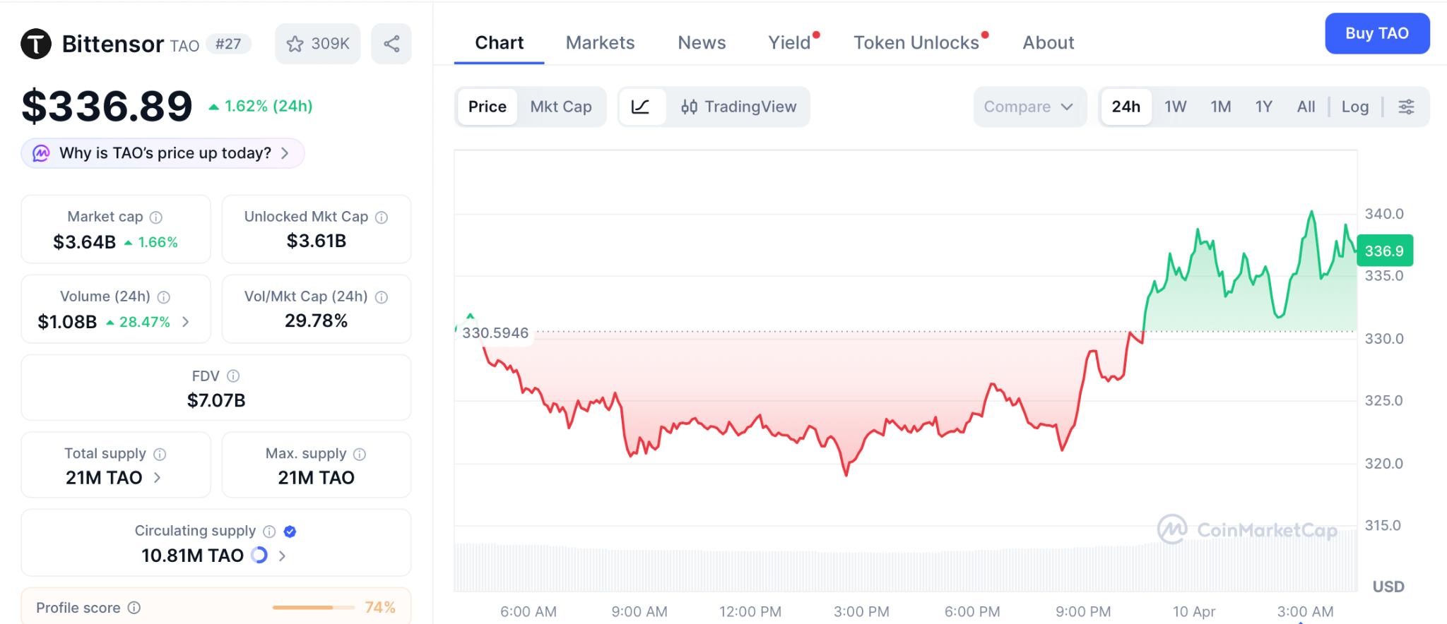 截至4月9日,Bittensor价格回落至336美元,尽管Grayscale将其AI基金中TAO配置比例提升至43%,并提交独立现货ETF申请,且网络涵盖129个子网,市值达36亿美元,但其从337美元至633美元的路径仅实现2倍增长,难以匹配一次上市事件带来的百倍级重构机会。