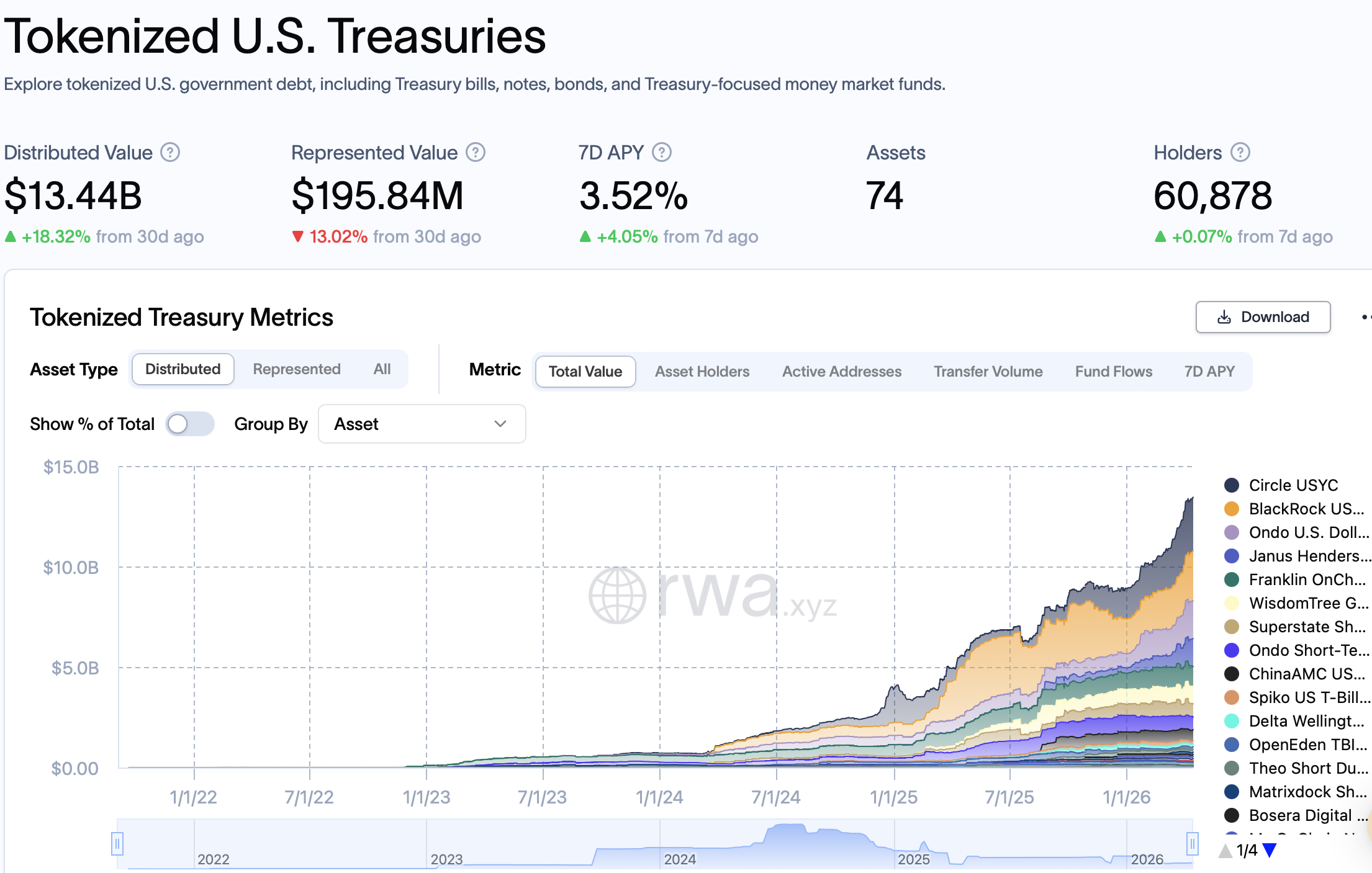 随着资产管理机构不断拓展区块链生态与交易模式,代币化货币市场基金呈现加速扩张态势。RWA.xyz数据显示,截至本稿发布时,包含货币市场工具在内的代币化美国国债产品总规模已由年初约89亿美元增长至超130亿美元。