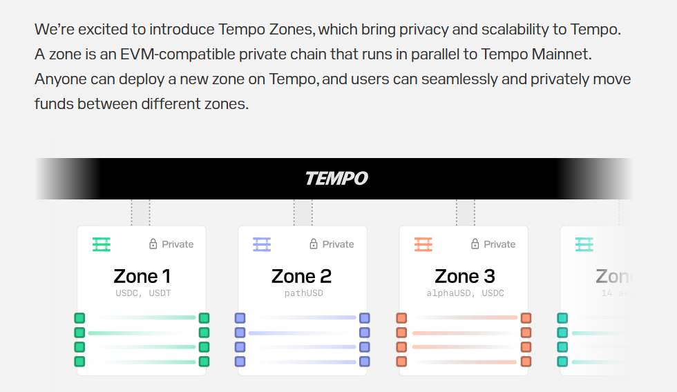 Tempo在周四宣布上线名为“区域”的新型功能模块,意在使企业在公共稳定币生态中实现类似银行系统的数据保密能力,然而这一设计并未获得加密领域普遍认可。