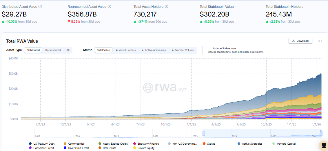 代币化黄金的快速发展,是整个现实世界资产代币化趋势的一部分。权威数据显示,该赛道已突破290亿美元规模,单月增幅超过10%。