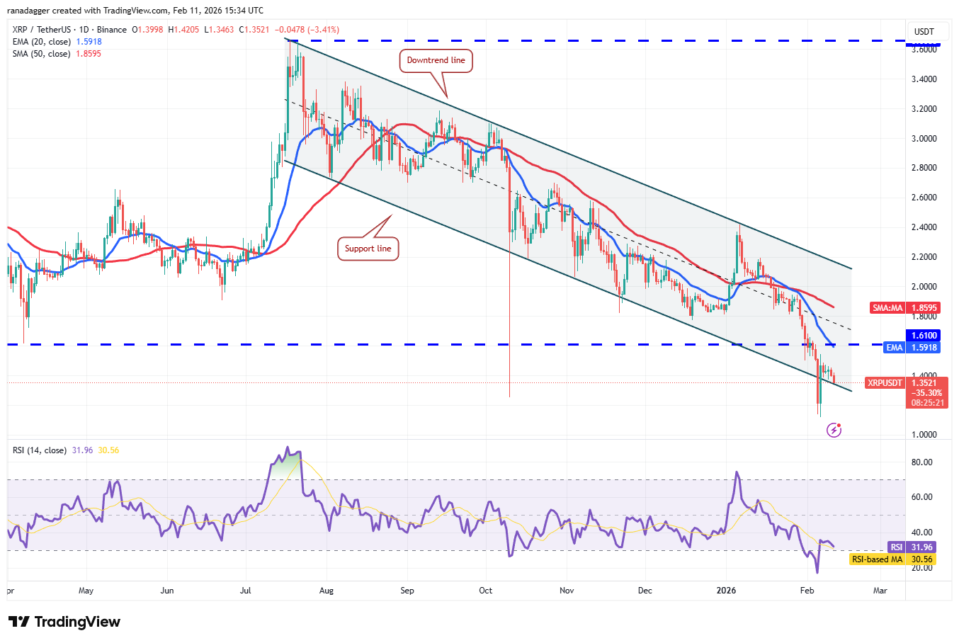 反之,若空头将以太坊价格打压至1,750美元以下,下一目标位可能是1,537美元。走强的首个信号将是收盘价高于2,111美元。随后该货币对可能攀升至20日EMA(2,364美元)。这对空头而言是关键防守位,因为若收盘价高于此位,可能推动该货币对升至50日SMA(2,838美元)。