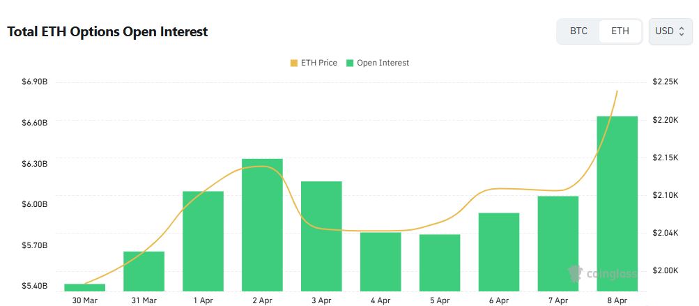 据8日上午9时最新数据,以太坊期权总未平仓合约价值达66.5亿美元,较前一日的60.6亿美元增长约9.7%。其中,看涨期权占据63.21%的份额,看跌期权则占36.79%,市场多空力量对比明显偏向多方。