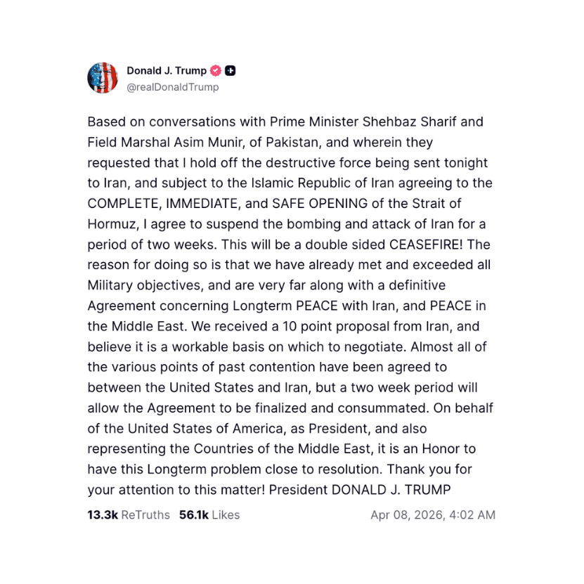 此次行情转折始于美国总统唐纳德·特朗普通过Truth Social平台发布停火声明。该消息一经传出,比特币价格迅速拉升至72,700美元高位,短时间内扭转了此前持续偏空的技术格局。