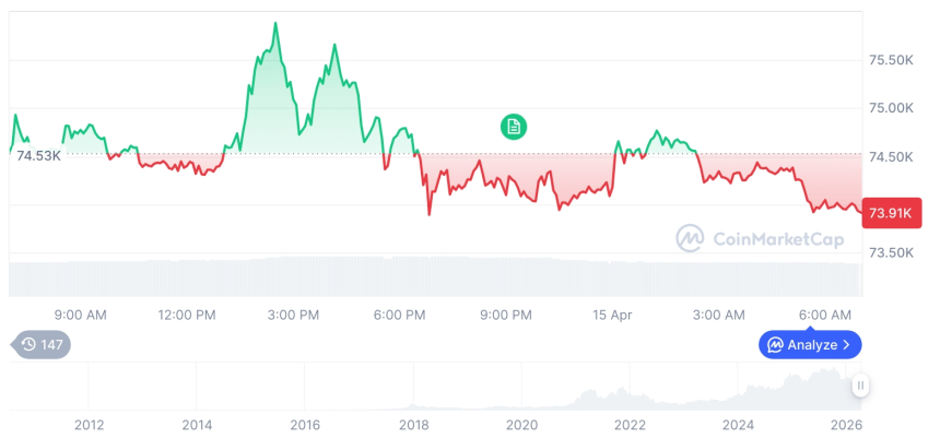 近期加密资产价格普遍回调,市场呈现系统性下跌态势。数据显示,比特币日内跌幅达0.81%,最新报价为73,939美元;以太坊则下挫2.32%,报2,319美元。