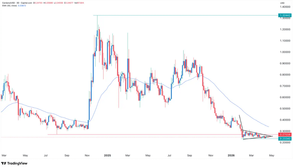卡尔达诺代币价格长期滞留于0.25美元区间,市场需求持续疲软,市值从峰值900亿美元缩水至约90亿,反映出加密市场整体承压态势。
